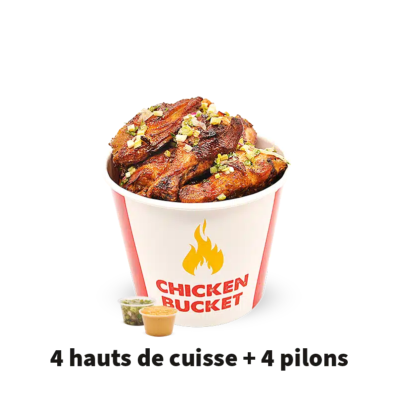 Accueil / La carte / Nos Buckets / Bucket Spécial I Bucket Spécial I Découvrez le Bucket Spécial 1 : 4 haut de cuisses et 4 pilons de poulet boucané. Une expérience savoureuse et authentique. 1 Gros pot de sauce chien et 1 Gros pot de sauce boucané offert. Allergènes Vous souhaitez commander ? Commander Produits relatifs : Bucket Spécial II Bucket Spécial III Bucket Family I